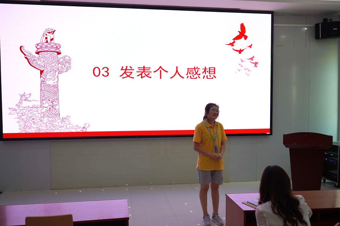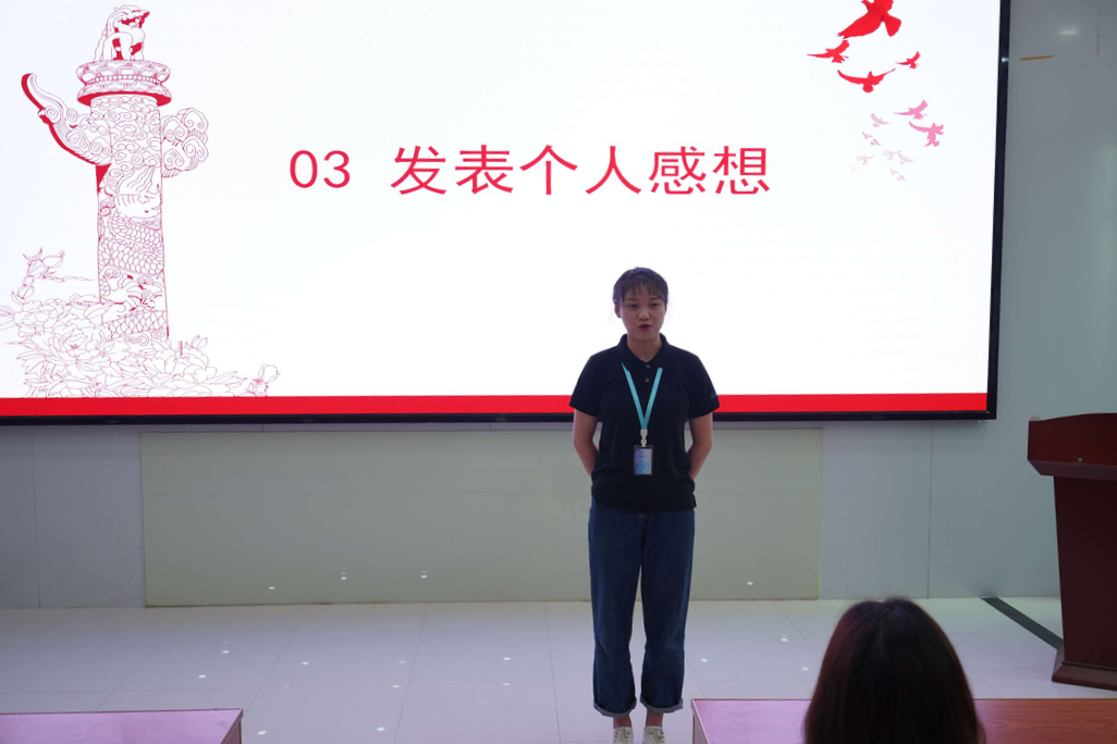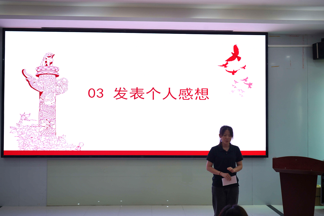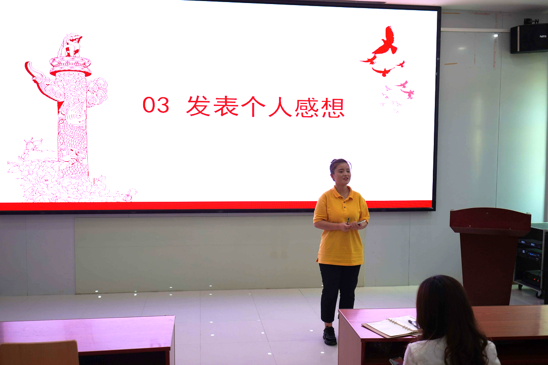 活動前,會議室大屏幕慢慢的浮現了建黨100周年的主題曲MV《萬疆》,在優美的歌聲里將八達嶺長城的美景盡收眼底,歌曲結束,由江曉霞書記主持并開場,作為一個有著25年黨齡的黨員,江書記一路走過來見證并經歷這祖國翻天覆地的變化,這一切,都源于黨。江書記表示“沒有共產黨就沒有新中國,這不是一首簡單的歌曲,而是一句警醒,警醒世人珍惜現在的生活,希望我們可以用自己微薄的力量為社會,為國家,為黨貢獻出自己的一份力量!” 在江書記鏗鏘有力的話語中會議正式開始!