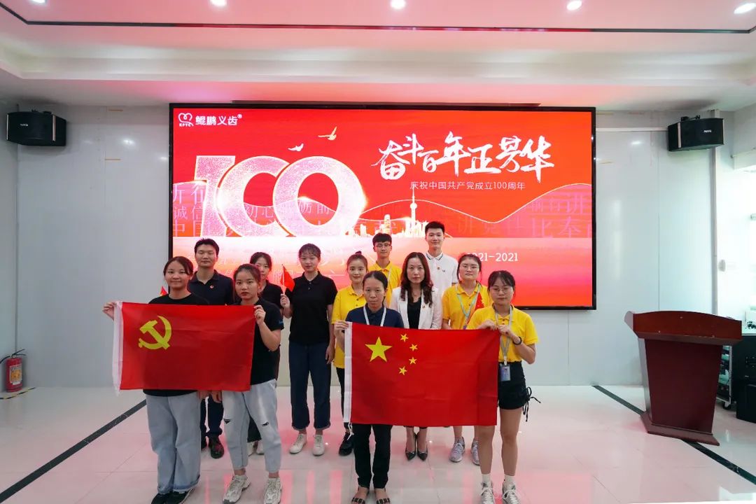 人民有信仰,民族有希望,國家有力量!在2021年7月1日,我們迎來了偉大的黨成立100周年的紀念日,初心不忘再出發,我們永遠跟黨走!為了慶祝這神圣而又偉大的節日,惠州市鯤鵬義齒有限公司的鯤鵬的黨支部在鯤鵬會議室舉辦了“崢嶸歲月,不忘初心,只爭朝夕---慶祝中國共產黨成立100周年”活動,由黨支部江曉霞書記主持,三名黨員,六位預備黨員與一名發展對象共11人參會。