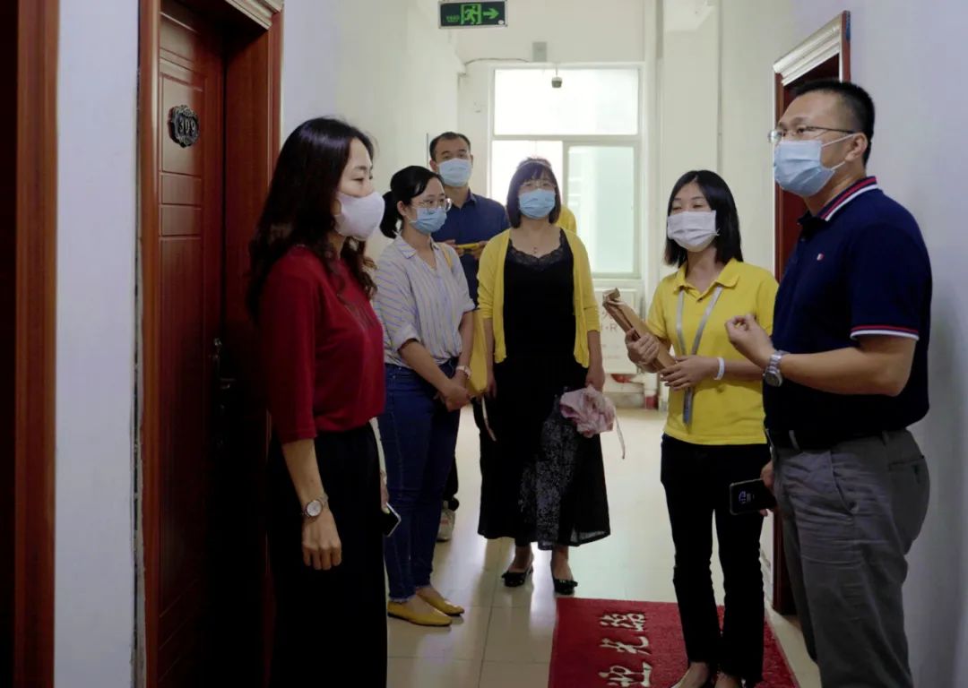 張院長一行在江曉霞總經理的陪同下現場查看了公司食堂及學生宿舍的情況,了解了公司疫情時期的就餐方案以及學生宿舍的環境衛生情況。